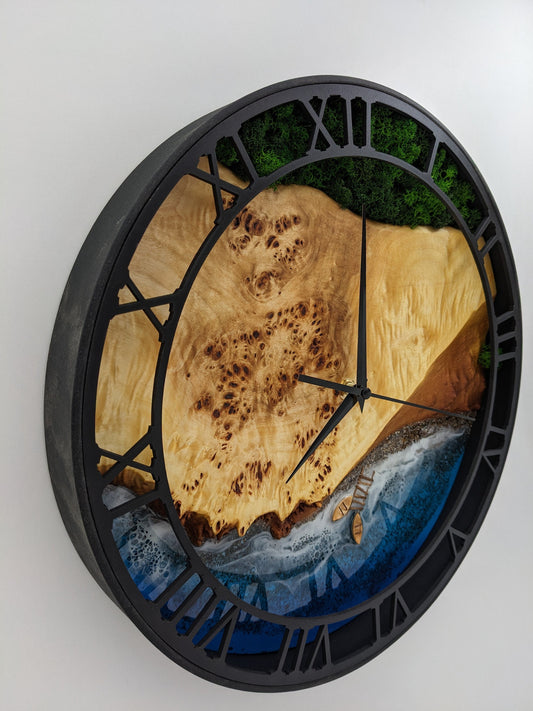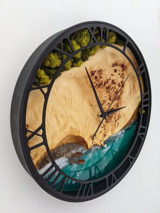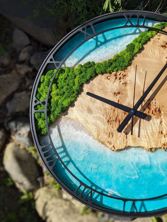 Epoxy Resin Ocean Clock: Moss & Wood Beach Wave Decor