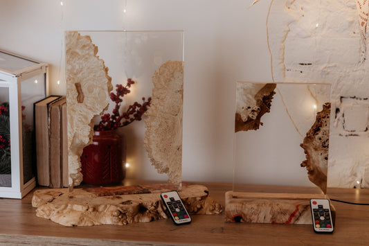 Epoxy Resin Night Light Lamp: Natural Wood Table Lamp