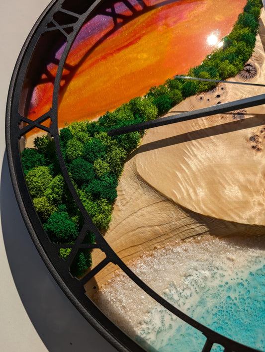 Epoxy Resin Moss Clock: Handmade Wood & Metal Sunset Beach Decor