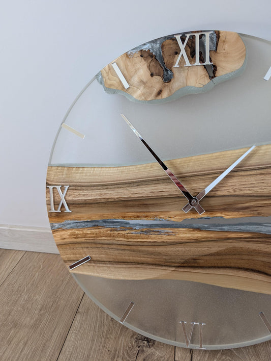 Epoxy Resin Wall Clock: Large Transparent Wood Decor